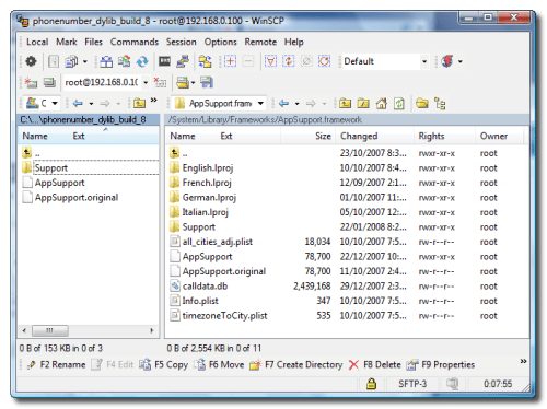 | This tutorial will show you how to stop your iPhone from crashing when making a call or SMS while using a SIM from an unsupported country. For most countries it is easier to just install iWorld from Installer rather then follow this tutorial. However, not all countries have been included in iWorld and iWorld can cause problems with your iPhone. The iPhone currently only supports SIM cards from the United States, Canada, France, United Kingdom, Italy, Germany, Japan or China. Step One Launch WinSCP by selecting it from the program list. Step Two Enter your iPhones IP Address into the Host name field. Enter root into the User name field. Enter alpine or dottie into the Password field. Now click the Login button. Step Four Select Open Directory/Bookmark... from the Remote:Go To Menu. Step Five Enter /System/Library/Frameworks/AppSupport.framework/ into the Open directory: field. Now click the Ok button. Step Six Download the latest PhoneNumber Dynamic Library zip file from: here A big thank you goes out to timschuerewegen for creating this. Step Eight Extract the downloaded phonenumber_dylib_build_8.zip. You will find a folder called phonenumber_dylib_build_8 which contains two files and a support folder. These two files are AppSupport and AppSupport.original. Step Nine Navigated to the extracted phonenumber_dylib_build_7 directory using WinSCP's left pane. Step Ten Drag AppSupport, AppSupport.original, and Support from the left pane into the right pane. When asked to confirm the copy action click the Copy button. If asked to confirm the overwrite click the Yes to All button. Step Eleven You can now reboot your iPhone by holding down the Sleep/Wake button for three seconds then sliding the Power slider to the right. NOTES***: This solution already includes support for many countries. There is a small chance however that it won't have your country. If this is the case you will have to edit the file PhoneNumberTemplates.txt that is inside the Support folder we copied over to the iPhone. Locate the heading for your country and add the correct phone number syntax for your country. For example Jamaica would look like this: // Jamaica [jm] jm 1 011 1 ### ####### [ISO Code] [Country Code] [IDD=International Direct Dial] [NDD=National Direct Dial] [Area Code] [Phone number] Thanks |
